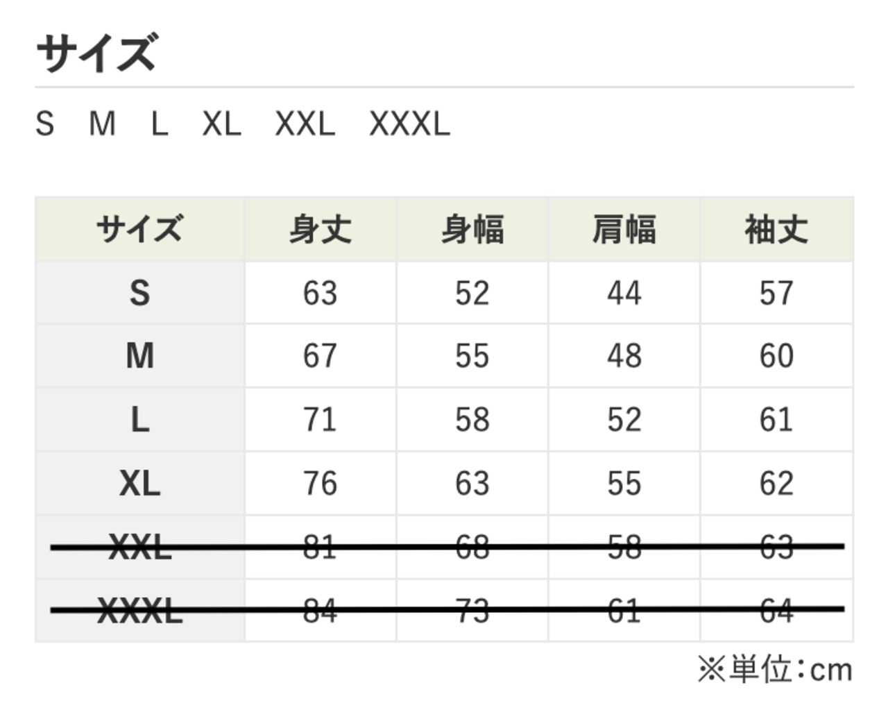 サイズ:S、M、L、XL
