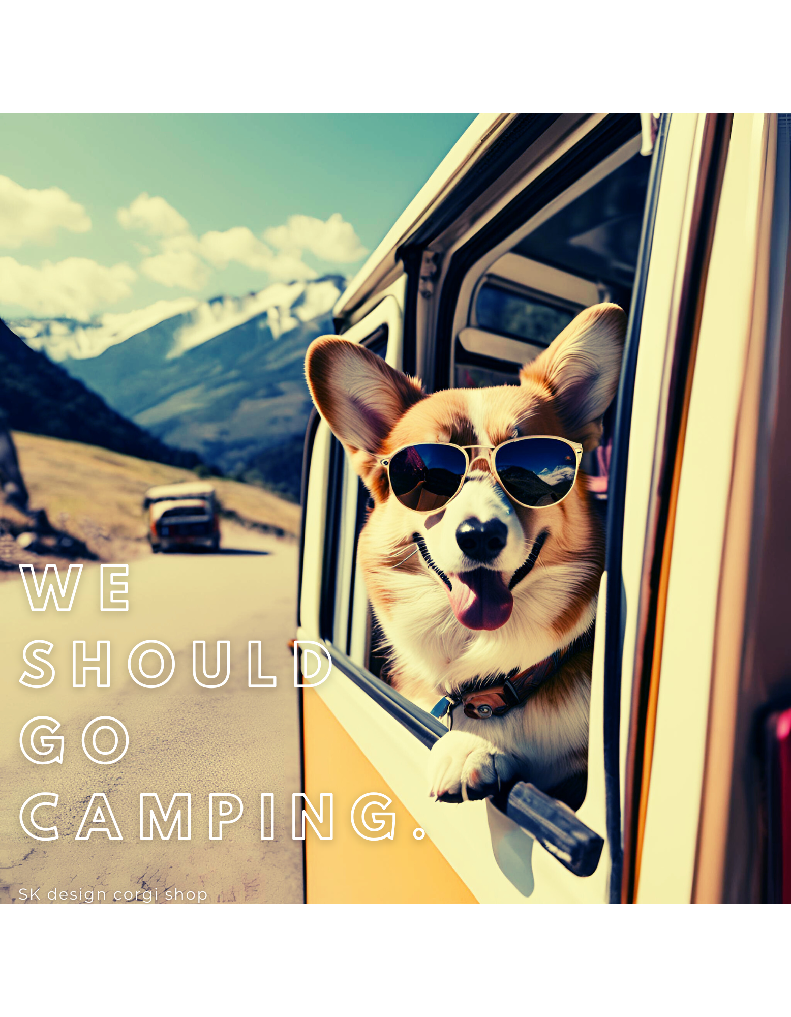 「キャンピングコーギー」のリブ付き長袖Tシャツ。